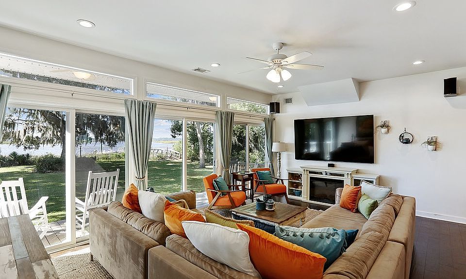 Private dock with about 20 to 30 minute boat ride to Wassaw Wildlife State Park or Fishtales restaurant at Fort McAllister Marina. 10 Minutes to Coffee Bluff Marina live music venue. Forest River, Little Ogeechee River, and Grove River Sand Bar is about a 25 yard tubing trip and makes for a great day! There is good skiing right from the dock or sand bar which is fun for everyone and great for teaching the kids and friends. The house has smooth flowing hardwoods from front to back. The three sliding glass doors open to the water front breeze, sunsets, and rocking chair wrap around covered deck with ceiling fans. The kitchen is equipped with subzero 42" built-in and 30" double wall ovens with convection bake and roast, the eat-in kitchen has an island as well as a breakfast bar the looks past the formal dining space all open to the living room and waterfront view from every space. The main bedroom wing has a large double walk-in shower and back entryway to the laundry room and small bedroom office.. the large office looks out over the yard,, waterfront, and water oak. The post lights accent the garden areas, fire pit area and dock as well as the guess house and gated entrance to the property. The guest house is equipped with full bath, small garage, living room and bedroom. Upstairs bonus room can be used as a guest room as well. The home is efficiently insulated with e-tech encapsulated spray foam, a new 30 year architectural shingle, a 3 ton heat pump hvac system, and a moisture proof closed Cell subfloor spray foam barrier. 6% t.s.b.