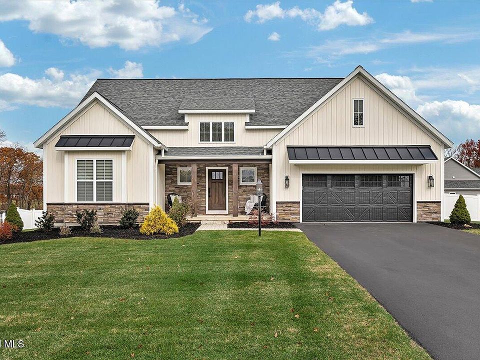 Welcome home! This beautifully styled farmhouse ranch showcases hardwood flooring throughout, enhanced by elegant design features such as mouldings, wallpaper, and a custom kitchen complete with a waterfall island, bar area, fully tiled backsplash and black stainless steel appliances. The primary suite boasts custom mouldings, tray ceiling, a stunning primary bathroom, and built-in closets. Two additional spacious bedrooms, a mudroom off the garage entrance, with a laundry room and walk-in pantry. Looking for flex space, this home offers a fully finished basement featuring shiplap walls, while still providing ample space for your utility room and storage. The backyard is fully fenced and spacious, perfect for unwinding and your outdoor gatherings. Nestled in a friendly neighborhood, this home combines modern comforts with timeless charm, making it an ideal choice for those seeking both style and substance. Whether you're a first-time buyer or looking to downsize, this exquisite residence provides you with the perfect backdrop for creating cherished memories.