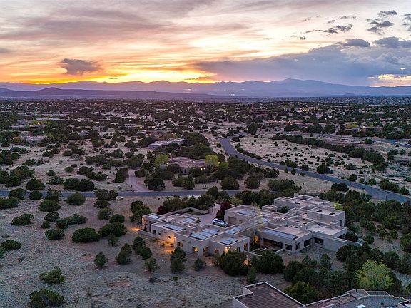 Welcome to an extraordinary estate built by Kim Dressel. Featuring a circular front drive, enclosed zen-like courtyard, and large separate motor court. With sweeping Sangre de Cristo views, this masterpiece blends elegance with tranquility and superb attention to detail. The entire residence is filled with natural light and augmented with custom lighting to showcase the art lover’s collection. Interiors are graced with vigas and Desert Indian Sandstone floors. A total of 9 fireplaces (indoor and outdoor) provide warmth and charm. A generous entry hall, framed with alabaster sculptural lighting opens to the Great Room, anchored with a center fireplace and inspired by a bank of floor to ceiling windows that showcase the Sangre de Cristos. This space flaunts soaring ceilings and clerestory windows that flood the space with light. A gourmet kitchen features a large center island with Taj Mahal countertops, Sub-Zero/Wolf appliances, and opens to adjoining formal dining area and a cozy family room. A lavish primary suite offers a fireplace and an east facing portal complete with hot tub, fireplace and mountain views. Primary bath includes dual vanities, steam shower, soaking tub, dry sauna and custom closet. Adjacent home gym for convenience. Transition to the second wing through an impressive Gallery Hall designed for private art collections, exhibits and concert entertaining. A dedicated wine tasting space and sculpture garden complete the gallery.