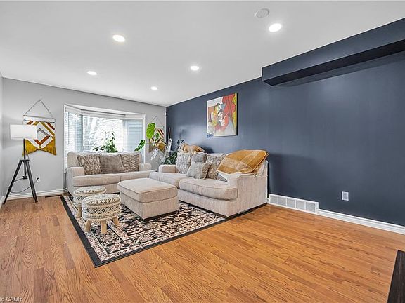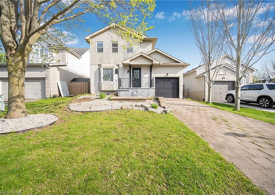 Welcome to this beautifully maintained former model home nestled in the sought-after Pond Mills neighbourhood. Backing onto Naomi Almeida Park, this brick 2-storey residence offers the perfect blend of comfort, convenience, and character—ideal for first-time buyers or young families. Step onto a poured concrete front entry with elegant wrought iron railing, leading you into an inviting open-concept living and dining area, perfect for both relaxed family living and seamless entertaining. The main floor powder room adds functionality and guest convenience. The sun-filled kitchen boasts a south-facing window, classic white cabinetry, a breakfast bar for three, and a cozy eat-in area with sliding patio doors that open to a private, fully fenced backyard. Enjoy outdoor living with a stone patio, electric retractable awning, spacious dining deck, and a gazebo—complete with a metal dining set and BBQ included! Upstairs, you'll find three generously sized bedrooms, including a primary suite with a walk-in closet, ceiling fan, and ample space for a king-sized bed. A 4-piece main bathroom and second walk-in closet offer additional comfort and storage. The newly finished basement features a full bathroom, a spacious rec room perfect for family leisure time, a laundry area, and ample storage throughout. Beautiful landscaping enhances curb appeal, while the location offers walking distance to schools, day care, shopping, and easy access to Highway 401—perfect for commuters. This turn-key home is ready to welcome its next chapter. Don’t miss your chance to own in one of London’s most family-friendly communities!