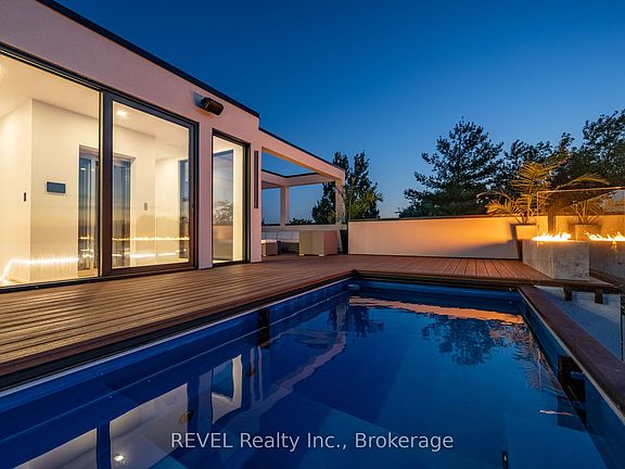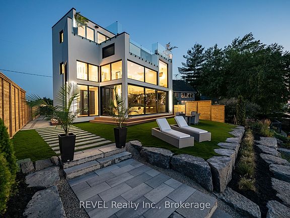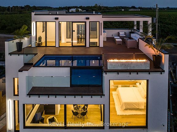 Welcome to Niagara on The Lake!! Canadas wine country. This unique and modern build is atrue one of a kind with nothing else quite like it. No expense spared on every detail; a dream home that was designed and built to be your own personal resort. The terraced property carved into the shoreline to live, relax and entertain with a natural flow right to the lake where you can jump on your boat or simply put your toes in the water and soak it all in. Exterior is forty percent glass taking advantage of every last bit of itsLakeOntario view and the Toronto skyline. Rooftop patio allows you to enjoy 360 views of the lake and the beautiful Niagara surrounding farmland. If thats not enough, be the first to have a rooftop swimming pool in Niagara, Dream kitchen with built in fridge and freezer, ice maker, temperature-controlled wine