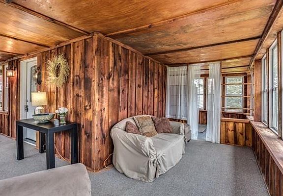 There is nothing left to do so relax on your oversized porch while enjoying the scenic views of the lake. This updated cape style home offers a bright eat-in kitchen, dining room with hardwood floors and a spacious living room with fireplace. The second floor offers three bedrooms and a large bathroom. The exterior has new vinyl siding! Other updates include newer kitchen, heat, roof and windows. Town sewer. Exterior storage shed.