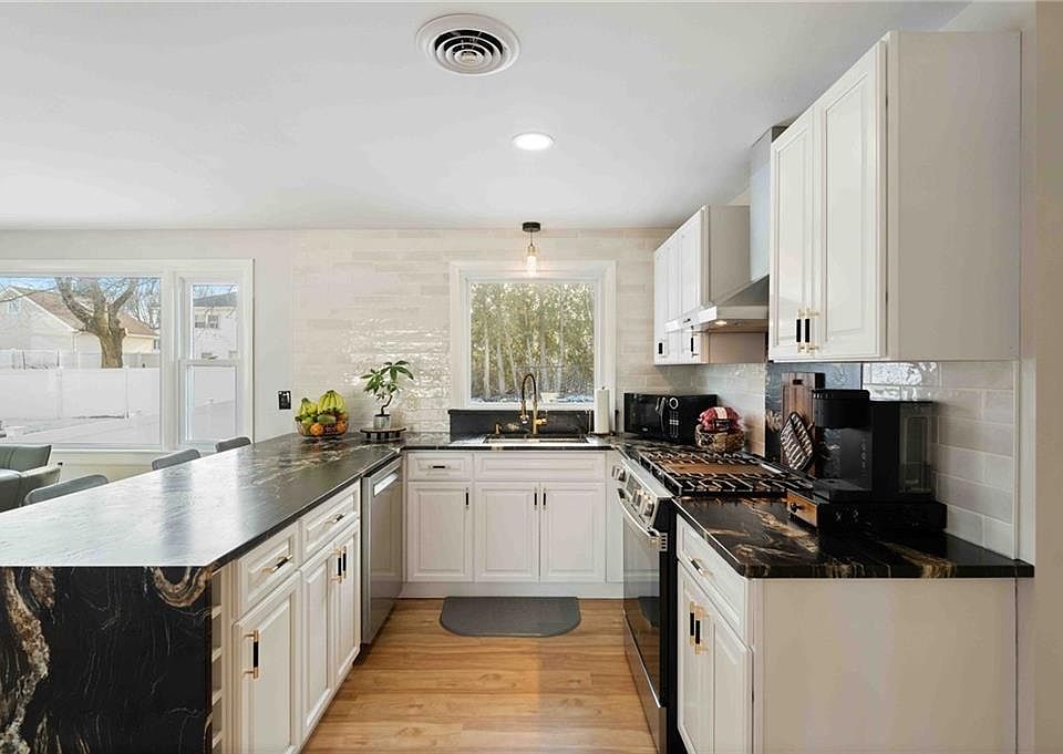 Modern & updated, versatile move-in-ready raised ranch. This 3 bed 1.5 bath home boasts a stunning kitchen with a waterfall island, dine in area, open floor plan, and plenty of natural light. The full bathroom is also updated and beautiful with a Magnolia Homes feel. The basement provides more options and versatility with a common area, utility area, and an additional room that is currently being used as a bedroom, a half bath, laundry area, and storage, and a 1 car garage! Ample yard space and parking. Only less than 10 minutes from Providence and major businesses such as Citizens Bank headquarters and Amazon distribution center for area professionals, as well as amazing dining and shopping. Easy access to major highways like 295, 95, 195, and Rt 6 & 10Don't miss out on this remarkable place to call home!