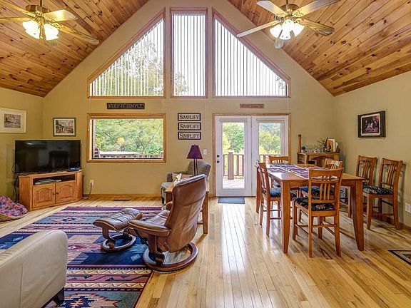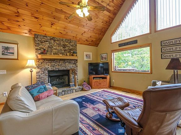 Enjoy an AMAZING view from this FURNISHED Chalet in the Raccoon Ridge community! Relax on your upper or lower level deck and savor the beautiful fall colors! When you can finally stop admiring the view, step inside to your open floor plan Great Room with a wood vaulted ceiling, wood flooring and a stacked stone fireplace to warm the chilly mountain evenings. Your kitchen with island/breakfast bar, great for morning coffee, next to your dining area. Down the hall is your laundry area, guest bedroom and bath. Up the stairs to your spacious loft Master Ensuite. A finished basement with a Rec Room, 3rd full bath and a bonus room awaits you downstairs. This home has a custom stone attached carport and is close to downtown, medical and hospital. A home that has it ALL and is waiting for YOU!