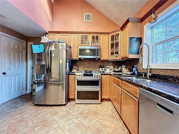 This SUPERSIZED home will not disappoint! Featuring central air, a large kitchen and dining area perfect for large gatherings, the kitchen boasts granite counters, stainless steel appliances with a gas range. A first floor primary suite has two closets and a full updated bath, complete with a washer hook up. The first floor also has two living rooms, one with a gas fireplace, and both have access to the backyard. The attached garage enters into an oversize mudroom for extra storage. The second floor has two bedrooms, another full bath and a in-law suite with a kitchen/living area, a fourth bedroom and third full bathroom and access to a lovely deck that overlooks the backyard. The backyard has an above ground pool, patio and fire pit area perfect for those summer days. The partially finished basement has two additional rec rooms, a large storage area and a laundry room. Come check out this awesome home all located on a quite cul-de-sac! Subject to seller finding suitable housing.