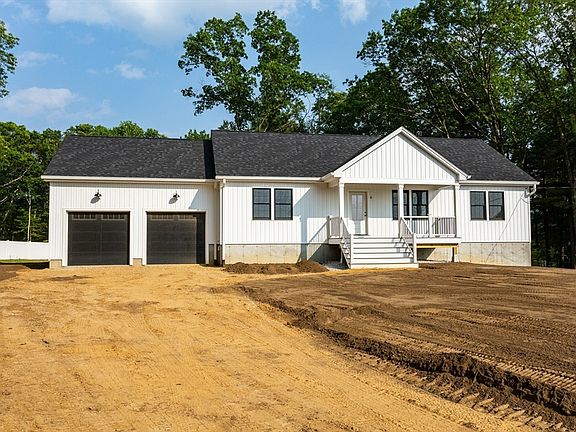 Situated in a newly developed cul-de-sac in West Brookfield, this stunning new construction Farmhouse style ranch showcases a custom-built design with three bedrooms and 2.5 bathrooms. The property boasts numerous high-end upgrades, including Anderson windows and sliders, oak flooring throughout, and central air. The kitchen is a culinary haven, featuring a six-foot island, granite countertops, stainless steel appliances, and a hooded vent above the gas stove. The primary bath offers an en-suite and walk-in closet, while the mudroom provides a half bath and stackable washer dryer hookups. A slider leads out to a deck overlooking the backyard, and the full walkout basement offers possible additional living space. The property also features an oversized two-car garage and town water, with a completion date set for June.