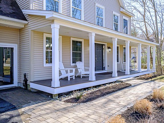The first floor offers a sun-filled kitchen with custom cabinets, new quartz countertops, double wall ovens, and a kitchen island with cook-top. That space flows into a bright and spacious family room with a gas fireplace, lots of windows as well as an oversized sunroom, composite wood farmer's porch and deck.