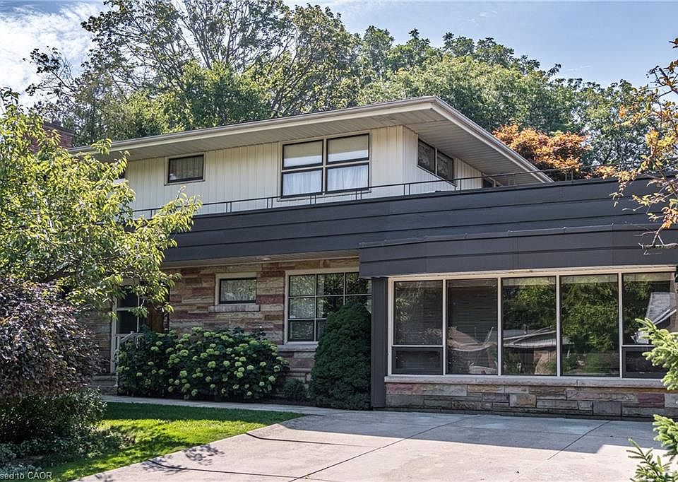 Magnificent Mid-Century Modern on quiet court near Cootes. Cherished by the original owners for 69 years, this one-of-a-kind two-storey home was thoughtfully designed for entertaining and family living. Offering over 3,657 sqft the home features an impressive 20x46 ft addition with a dining room that seats 14 guests and a spectacular family room with beamed ceilings surrounded by floor-to-ceiling windows overlooking the pool and private garden oasis, truly an entertainer’s dream. Built in 1956 the home’s design reflects timeless quality with high-end finishes and distinctive décor. Enter the foyer with slate floors and into the sunken living room with stone fireplace, and up to a dinette with custom built-in cabinets and stunning marble countertop. The retro kitchen features quartz counters, double ovens, cooktop, and built-in banquette that leads to a massive games room, which was converted from a double car garage, with huge pool table for family fun of all ages. Step out to the pool cabana with convenient kitchenette, 2 change rooms, 3-pc bath, and out to the lush private garden oasis with huge 20X40 ft pool, heated through rooftop solar panels, multiple seating areas and custom designed fence with cool coloured inserts. The main floor also includes a private office and 2-pc bath with marble counters, and on the second floor you will find 4 spacious bedrooms, including the primary with 3-pc ensuite and walk out to a rooftop terrace, plus a 4-pc retro family bath, and walk-in linen closet. The finished basement offers even more living space with an office, recreation room with wet bar, 2-pc bath, laundry, and ample storage. Perfectly located just steps to Cootes Paradise, Princess Point, Waterfront Trail, Churchill Park, schools and Westdale Village, shops, restaurants, amenities, and theatre. Minutes to McMaster University & Hospital, Go-transit & highway access, make this a super convenient Westdale North location to call home. RSA