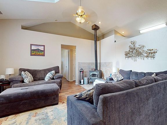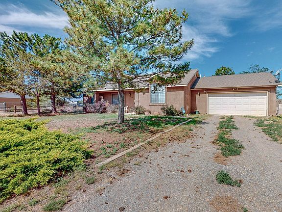 Exceptional Edgewood Property! Northern NM style home on fully fenced 1 acre lot close to restaurants and shopping. Home boasts cathedral ceilings, ceiling fans, newer vinyl floors throughout and tile in all wet areas. Large barn doors open from the main living area to a spacious Owner's suite with and large walk-in closet and custom tile shower surround. Head outside to the covered patio where you can entertain family and friends and still have a separate area for your horses, goats, chickens, etc. Wonderful home just waiting for new owners to make it theirs. Only 30 minutes to ABQ and 45 minutes to Santa Fe, makes this home the a great choice for those looking to live a slower pace in the fresh air while still being close to the big cities.