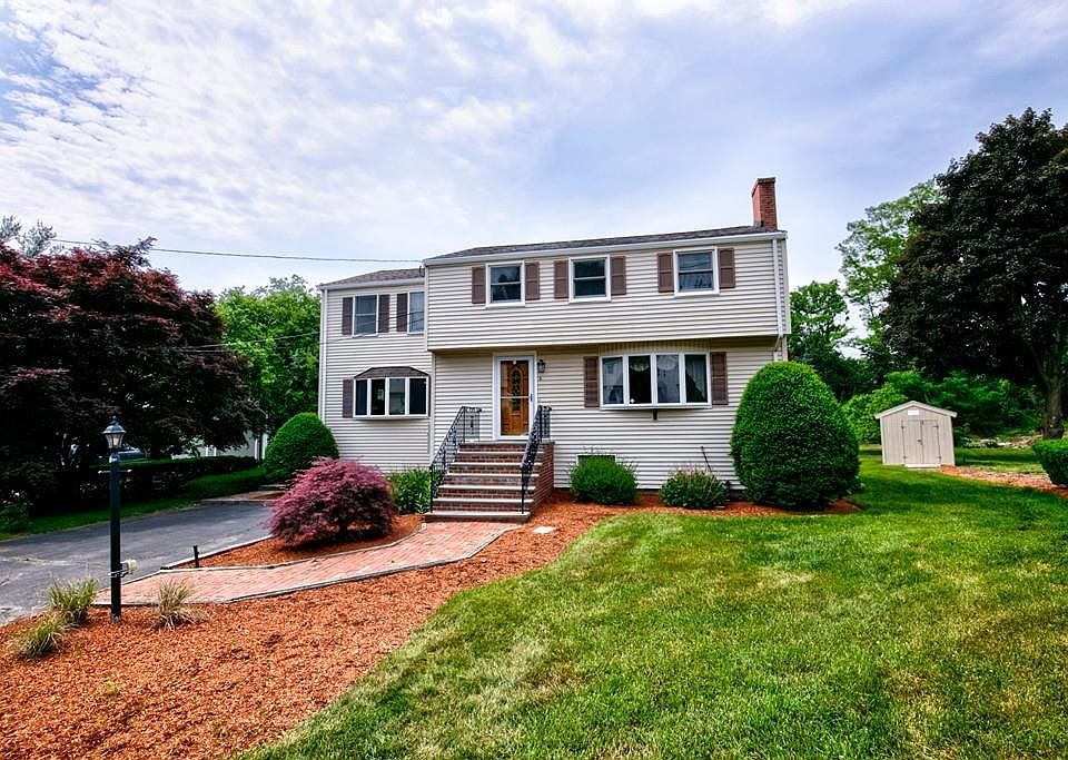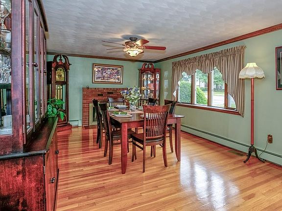 BEAUTIFULLY MAINTAINED GARRISON COLONIAL on CUL DE SAC with easy access to highways, Town Common , shopping and busline. HARDWOOD FLOORS THROUGHOUT! Large open floor plan kitchen with center island, 2 fans w/ light and dining room overlooking the oversized deck and large, level yard for great entertaining! Living room has brick fireplace and large bay window. Great Family room with front to back size, fan w/ light & easy access to the deck. 2nd floor offers a KINGSIZE Master bedroom with walk in closet, 3/4 bath , fan w/ light plus 3 additional bedrooms , new full ceramic tile bath beautifully updated with a skylight and 2nd floor laundry hook up. Lower level with walk out is unfinished and ready to expand. UPDATED SYSTEMS include 2 year old NAVIEN heating system , 2 Year old CARRIER Central AC, irrigation system, alarm system, 200 amp service, roof 6-7 years. This home has been lovingly cared for and is ready to move into!