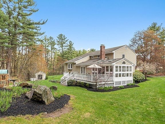 UPDATED & INSPIRING! Your summer just got a whole lot happier here! Invite visiting parents, family or friends to stay with you this summer in their own private area including full bath, laundry, refrigerator, separate access walkout to brick patio & brick walkway. 5 additional reasons that make this home special. 1. Turn-key condition makes your life easier! 2. Located at the end of a cul-de-sac in a large fun neighborhood with 6 interconnecting cul-de-sac streets! 3. Set on a pretty lot with oversized deck, brick patio, & swing set ready for immediate use! 4. It's convenient, walk to the public "T" station to Boston, close to the South Elementary School, & quick highway access! 5. Kitchen & family is open to one another, amazing sunroom, hardwood floors throughout, central AC, real wood burning fireplace, maintenance free vinyl siding, Tesla charger in garage, & so much more here! Have your 4th of July barbeque in this backyard this summer! Don't miss this! BEAUTY WORTH CELEBRATING!