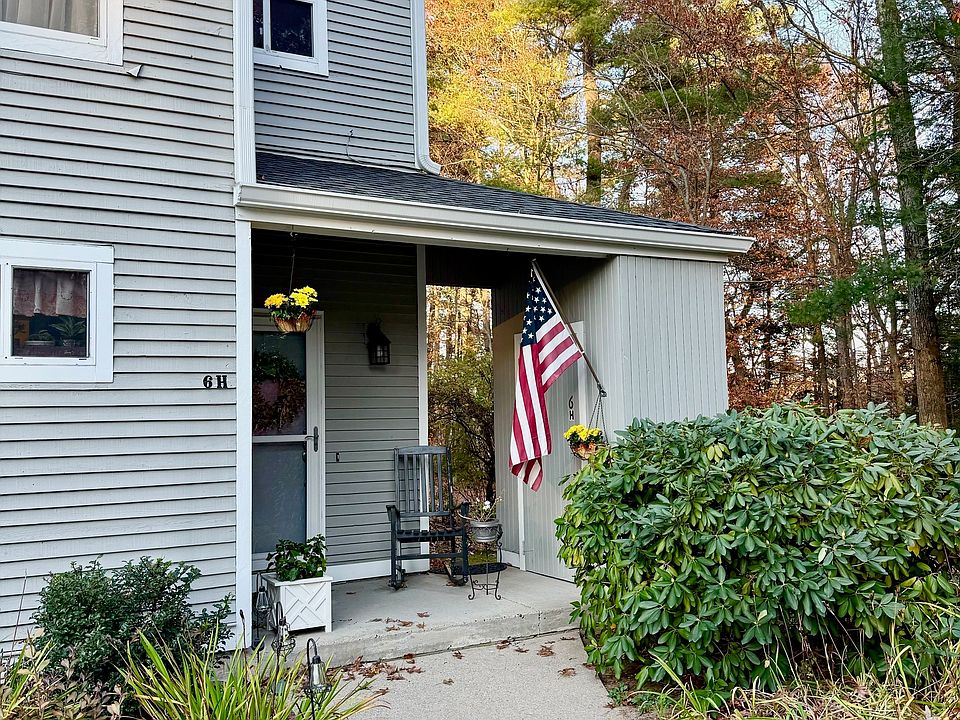 Welcome to 6 Gillette Court! This quiet end unit townhome in the sought-after Pine Hill Condominium community promises the ease of modern living in a stylish two-bedroom home. The main level features an adorable galley kitchen with stainless steel appliances and white cabinets. Hardwood floors grace the entire first floor, from the kitchen through the open-concept living and dining rooms. There are plenty of windows to let the light shine in, including two sets of French doors. Watch nature unfold across your large end-unit patio. An updated powder room rounds out the main floor. Upstairs you will find two spacious bedrooms with plenty of storage and lots of light. The main bedroom has both a walk-in closet and a large reach-in closet. The guest bedroom features an extra large closet as well. The main bathroom has a shower/tub combo and a gorgeous new vanity. A handy laundry closet with new washer and dryer in the hall makes for the height of convenience. Gillette Court is close to picturesque downtown Simsbury, a popular destination with its fine dining and retail establishments, as well as beautiful walking trails.