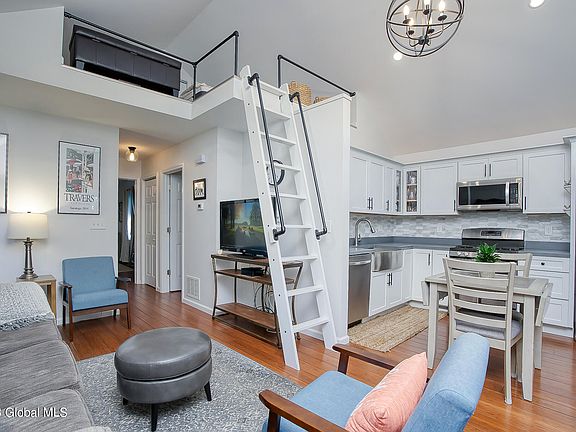 First-time buyers and investors take notice! Re-modeled inside from top to bottom in 2018-19, this affordable 620 sq. ft. energy efficient Bungalow, is compact, but not confining. Tastefully redone the step saving eat-in kitchen offers solid surfaces, decorative backsplash, and SS appliances. EZ maintenance bamboo flooring. Living room boasts a Cathedral ceiling. Slider from primary bedroom leads to deck and fenced -in backyard. Second bedroom could double as an office. Walk-up loft with additional storage. Good sized yard, plenty of privacy. Paved driveway offers off street parking enough for 6 cars. Walking distance to bus line, seconds to highways, AI Airport, Crossgates, Guilderland YMCA, and shopping. Invest in your future! Good things do come in small packages, this is one of them!