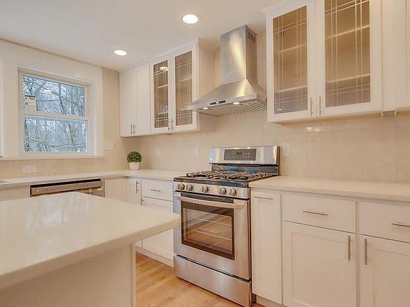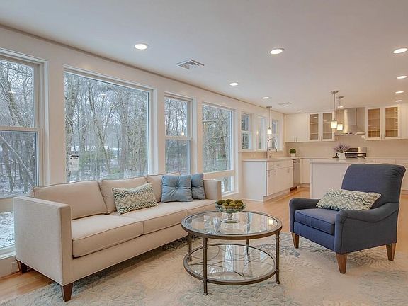 If you thought a "Split Level" home was not for you, this renovation will change your view! This amazing home has been completely transformed and it is so inspiring to see. We would classify it more as a "Contemporary" now, gutted and re-designed with today's lifestyle in mind. One of our favorite & unexpected features is the expansive walls of glass along the rear, meant to take in the natural southern light as well as the views of the private, wooded rear yard. The designer white kitchen is the heart of the home with quartz counters, stainless appliances & large island, perfectly open to the gathering space. Relax by the double sided gas fireplace here. Tucked behind here is a room that could be a DR, lounge space or playroom, depending on your needs. The private master has a beautiful bathroom - in fact all 3 full bathrooms are brand new. LL is totally flexible living space, with a wetbar in the family room, an additional bedroom/office and more. Such a versatile floor plan!