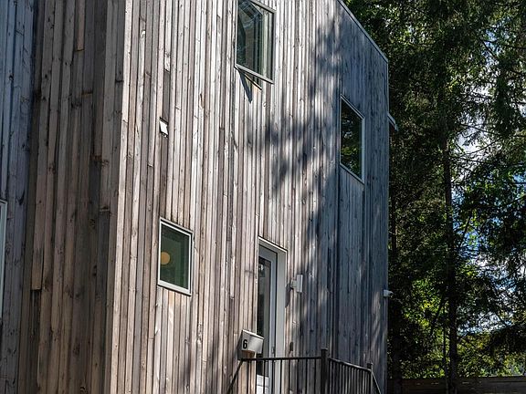 Natural lightModern designFenced yardOpen-concept main levelEnergy efficiencySolid wood sidingOversized sliding glass door
