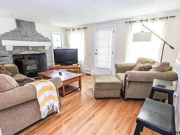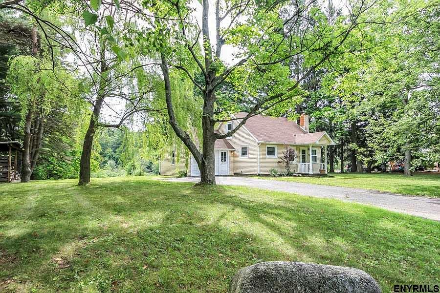 Serene and peaceful surroundings will greet you as you overlook both your front yard where horses graze and your backyard where you have a lovely meadow and neighboring pond. This charming and cozy bungalow is the perfect place to become a homeowner..stop paying rent! This home features a large master suite upstairs and an additional guest room and full bath downstairs. There is also a cozy living room which is open to the kitchen, full basement, and large outbuilding. Burnt hills schools too!