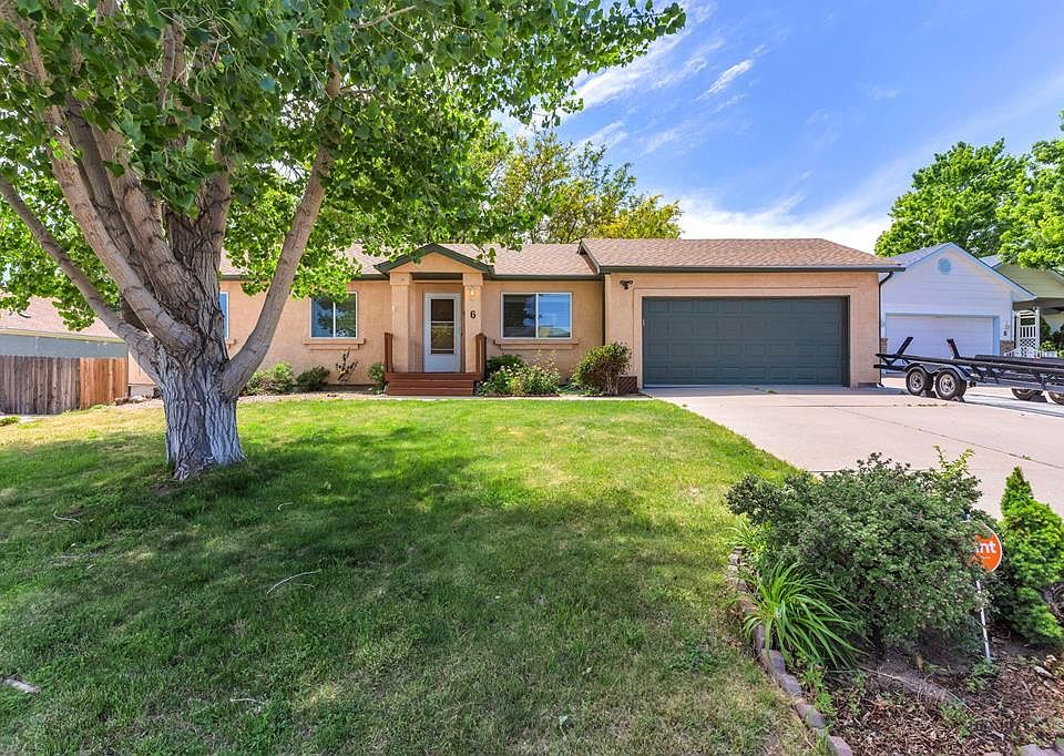 Northside rancher offering 1,000 sqft of main level living, 2-bedroom, 1-bath home located in a tranquil cul-de-sac with no HOA! A beautifully landscaped, flowered and fenced yard with mature shade trees (in the front and back) greets you as you walk up. As you walk in you'll notice the vaulted ceilings and delightful open concept. The kitchen boasts stainless steel refrigerator, dishwasher and electric stove/oven that are newer, alongside a newer garbage disposal and pantry. The main bedroom includes a spacious closet for ample storage. A wheelchair accessible ramp to the front door was installed in 2025 making it wheelchair accessible/handicap friendly (could be left or removed). The bathroom was remodeled in 2024 and includes a walk in shower. Stay comfortable year-round with a furnace and AC installed in 2013. The backyard patio area is perfect for quiet enjoyment and shade in the hot summer months. Enjoy the convenience of RV parking and a 2-car garage with a new garage door (freshly painted) installed in 2019 and a freshly completed driveway from the summer of 2021. Conveniently located close to Eagleridge amenities and Centennial High School, close access to I-25. Don't miss out on this opportunity to own a well maintained and move in ready home in this tidy, tight-knit community!