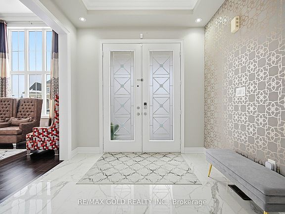 This is an absolute show-stopper in Brampton's most prestigious community. Built by Starlane, this "Highland 5" model offers a massive 4,486 sq. ft. as per MPAC .The home features breathtaking 19' ceilings in the family room and 14' ceilings in the living room, creating an open and airy feel. The main floor has 10' smooth ceilings with beautiful hardwood floors that continue through the upper hallway and second floor with 9' ceilings. The custom chef's kitchen is a dream, complete with built-in stainless steel appliances, quartz countertops, a backsplash, and a large pantry. This home is fully loaded with modern comforts like a water softener, central vacuum, a full surveillance camera system, and a built-in sprinkler system. Outside, you'll find professional interlocking perfect for entertaining, along with elegant pot lights that make the home shine at night. Very bright home with Huge windows Premium Corner lot and No Sidewalk. As a huge bonus, the finished basement is already rented. This is a must see.