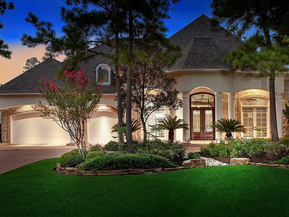 Gorgeous custom 5 bedroom home on a large lot in Sterling Ridge! Freshly painted interior and exterior, covered front porch, soaring ceilings, travertine floors, sweeping staircase, built-ins, crown moulding and abundant storage throughout. Island kitchen with granite counters, double oven, breakfast bar, under & over cabinet lighting opens to the breakfast room and den; washer/dryer/fridge included; both formals; handsome study; master retreat and 2nd bedroom down; game room, media and 3 bedrooms up; oversized 3 car garage; resort style backyard features a sparkling pool, spa and lanai surrounded by tropical landscaping. Zoned to exemplary schools and close to area parks, hike/bike trails, shopping and restaurants!
