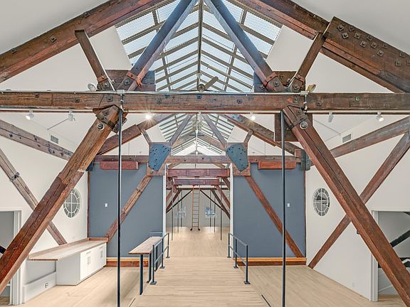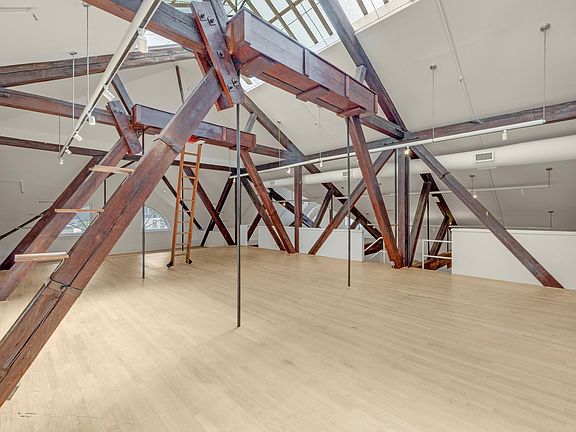 Located on a beautiful cobblestone street within the iconic New York Mercantile Building, a historic landmark since 1884, this sixth-floor gem spans 7,695 square feet of customizable workspace. Featuring oversized skylights & unique windows, bathing the interior in natural light, gabled ceilings, and elegant architectural accents, the 6th floor Penthouse offers amenities such as wood floors, a conference room, private restrooms, and a wet pantry.