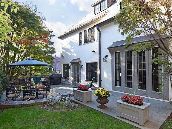 Premier Village location with easy walk to school, town & train. This large Tudor home sits prominently on Hawthorne Rd. A covered front entry to the house opens to large foyer adjacent to LR w/wood burning fireplace. Off LR is a beautifully proportioned family rm/office w/ french doors to private patio.The DR with french doors to the private patio provide an ideal flow for entertaining. An eat in kitchen w/family room area has access to backyard. 2nd floor has master bedroom with en-suite bathroom & walk in dressing room. There are 2 additional bedrooms & bath, plus 4th large room w/ two built in desks which can also serve as a private family room. The 3rd floor has 2 bedrooms & full bath. Walk out basement w/ 733 extra square ft of finished play space & full bathroom, small room, 2 attached garages w/ space in driveway for basketball. Retaining walls & stone work that was done to create private yard & patio is unsurpassed in its workmanship - Bonus is the state of art heating system