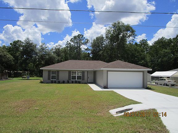 2017 concrete block stucco 3 bedroom 2 bathroom 2 car garage home on a dead end Cul-De-Sac road with 1437 living Sq Ft and a total of 1865 Sq Ft under roof. Home is on 0.26 acres and surrounded by other well maintained properties. Home also features a private backyard with no other homes behind and backs up to the Greenway trails. Split plan. White 6 panel doors throughout. Bright and open Great Room with Cathedral Ceilings and ceiling fan. Open modern Kitchen with wood cabinets and plenty of counter space. Plenty of sunlight from bay windows in breakfast nook. Huge Master Bedroom with tray ceilings and a large walk-in closet. Nice size guest bedrooms. Spacious Indoor utility room with folding counters and cabinets. Brand new ceiling fans throughout home. New custom blinds throughout hom