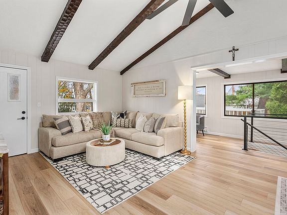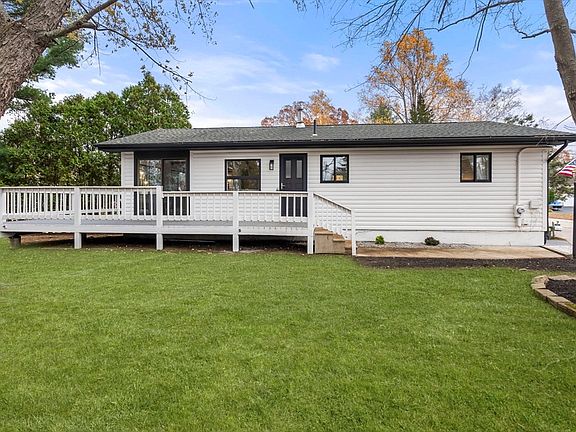Welcome to your dream home in a desirable lake neighborhood with year-round lake views! This beautifully updated one-level home offers an inviting open-concept layout with cathedral ceilings. Enjoy a modern kitchen featuring a large peninsula with stunning quartz countertops and a waterfall edge—perfect for entertaining or casual dining. The home includes two spacious bedrooms plus a bonus sitting/office room, ideal for relaxing or working from home. The bathroom features a stylish walk-in shower and thoughtful updates, while laundry hookups are conveniently located on both the main level and in the lower-level laundry room. A massive 4-car garage with dual doors provides exceptional space for vehicles, storage, or hobbies. Have a cup of coffee on the large deck while enjoying the lake view. Easy Access to the Lake via the State Boat Ramp. Don’t miss the opportunity to own this beautiful home with gorgeous lake views—perfect for year-round living or a peaceful retreat