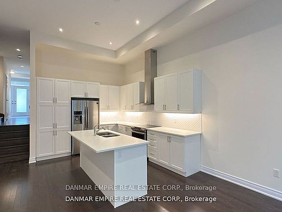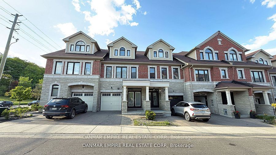 Spotless and like new, largest freehold townhome in this complex! This over 2200 SF home offers modern elegance in the heart of Woodbridge! Featuring 12 ft ceilings on the main floor, three large bedrooms, each with its own walk-in closet and private ensuite, plus three full bathrooms and a convenient main-floor powder room. The home boasts beautiful hardwood floors throughout and heated floors in all bathrooms. The third-floor master suite is a serene retreat with an oversized walk-in closet, a private rear balcony, and a luxurious ensuite featuring a double sink, frameless shower, and soaker tub. The main floor highlights a gorgeous eat-in kitchen with upgraded quartz counters, SS fridge, stove, and hood fan, all overlooking a private backyard. The second floor includes a spacious laundry room and a versatile family room or private office. With abundant natural light from large windows, this home blends the peaceful calm of nature with the convenience of city living. Truly a must-see, you don't want to miss out!