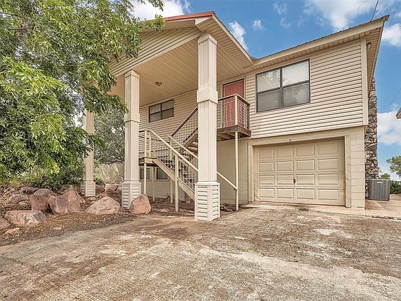 LAKEFRONT RETREAT WITH STUNNING VIEWS - TURN KEY & READY FOR SUMMER FUN! Welcome to your dream getaway! This beautifully renovated 2-story lakefront home offers everything you need for the ultimate lake lifestyle. With 3 bedrooms, 2 bathrooms, and space to sleep a crowd, this 2,160 sq ft retreat is perfect for hosting family, friends or corporate guests. Perched on the water's edge with uninterrupted lake views, the home features a drive-through 2-car garage—a rare and incredibly convenient bonus for parking boats and trailers with ease. Recent upgrades include: new exterior siding and metal roof, spacious covered porch and upper balcony, upgraded kitchen with modern appliances, custom cabinetry, breakfast nook, and window seat, fully updated bathrooms and new floor coverings throughout. Inside, the large living room welcomes you with a brick hearth wood-burning fireplace with built-in shelving and cabinetry. A wet bar with closable doors adds a fun and functional touch, perfect for entertaining. Step outside from the living area to a huge deck overlooking the lake. On the main floor you'll find the primary suite with private bath and another sleeping area with two built-in bunk beds. Downstairs offers two more bedrooms. One of the bedroom doubles as a game room. From the game room, step onto the oversized covered patio that has a view of the lake—you can even walk straight to the beach! Fully furnished and turn-key, this home is ready for you to start making lake memories from day one. Don’t miss this rare opportunity to own a stunning lakefront property with unbeatable views, thoughtful updates, and effortless comfort.