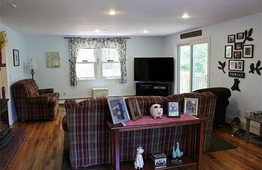 For those seeking peace and quiet, scenic views, and a beautifully renovated spacious home, this is it! This move-in-ready quality low maintenance home offers a front to back Living Room hardwood floors, brick fireplace with high efficiency pellet stove, sliders to deck overlooking back yard and natural woodlands. Updated kitchen has an island breakfast bar, solid surface counters, wood cabinets with access to a three season room leading to deck or the Formal Dining Room with hardwood flooring and Bay Window. On the second floor is a huge fantastic Master Bedroom, there are two additional bedrooms plus lower level Family Room with fireplace. All tastefully decorated renovated with quality materials and care. Tiled Foyer with coat closet, large basement for storage plus shed. New roof 2014 and furnace in 2013. All located on a dead-end street with easy access to trials, quarries and conservation land.