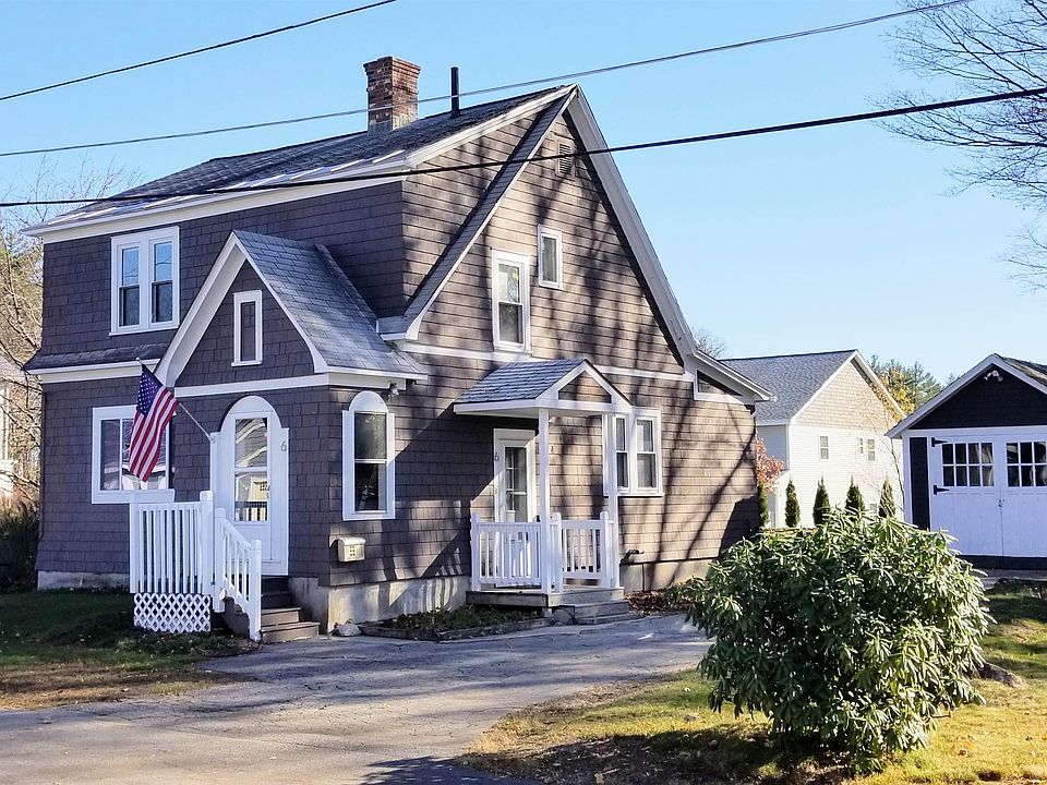 Distinctive Cape Style home with Bungalow character. Circa 1929 this house has unique local history. Built as a water house for Swenson’s local quarry many original features remain. Open concept kitchen/dining room filled with natural light. Kitchen set-up features 5 burner self-cleaning convection gas range, ample counter space and cabinets. Oversized sink and beautiful pulldown faucet, workable space for that cook enthusiast. Spacious dining room with original corner cabinet abuts kitchen area at the breakfast bar. Back of dining area, 8x24 “flex space” makes a great office/studio, abundant windows that overlook back deck/yard. Inviting living room with pink granite, brick corner fireplace, picture window and hardwood floors. Formal “double door” front entrance & hall closet. Glass doorknobs, wide wooden staircase, knoll post and curved bannister, beautiful period features. Two spacious bedrooms on the second floor with full bath. Detached 1 car garage with swing out carriage doors. Convenient location and cute as a button. Property Sold As Is.