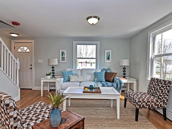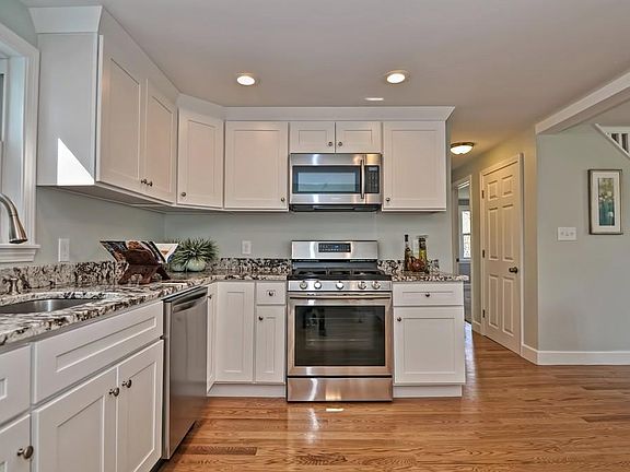 WOW! There's nothing to do but move into this beautifully renovated 3 bed 2 bath Cape! Step through the front door and into a bright open concept living area and kitchen, complete with New White Shaker cabinets, gorgeous granite counters with peninsula & stainless appliances.Off the kitchen is a sunny dining room or sitting room, with access to the backyard. Refinished oak floors gleam throughout the main level which are accented by the tons of natural light and new paint throughout. The first floor master suite is to die for - new carpet, private bath w/granite double vanity, new toilet, new oversized tiled shower, and huge walk in closet. Upstairs you'll find two large bedrooms, with new carpeting. The interior boast new lighting fixtures, new first floor bath with laundry. The vinyl siding, windows, garage door and exterior doors are all brand new and young roof. New Plumbing, new electric inside /out, New High efficiency gas heating system. Large & professionally landscaped yard.
