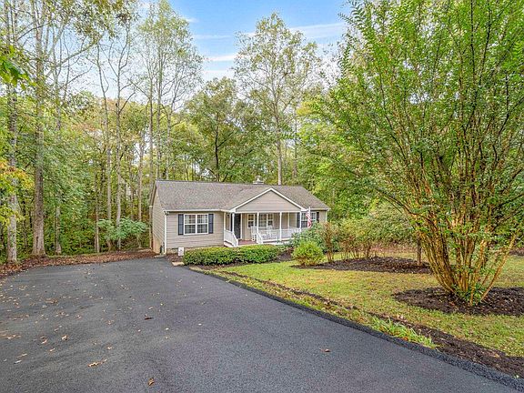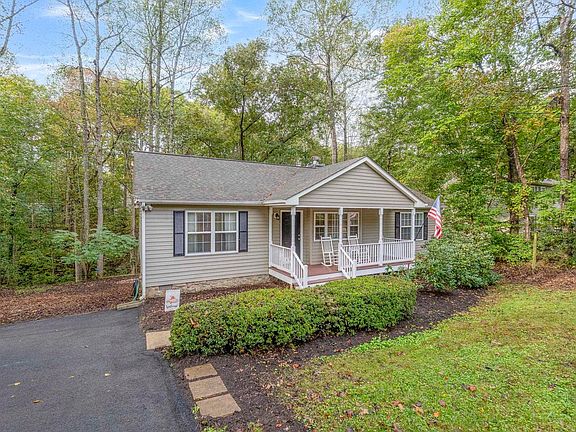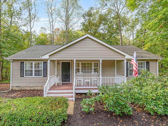Easy one story living! Beautifully landscaped, with an oversized paved driveway. Nestled in the trees, providing a true sense of privacy, while yet enjoying the vast amenities Lake Monticello has to offer. Sip your morning coffee on the inviting front porch or unwind on the tranquil rear deck surrounded by nature. Inside, you'll find gorgeous hickory hardwood floors throughout the main living areas and a stunning stacked-stone fireplace as the focal point of the living room. The kitchen boasts recently replaced appliances, along with recent updates to both baths. The spacious primary suite is a true retreat, featuring double walk-in closets and a luxurious bath with a double vanity. Don’t miss the opportunity to call this serene, move-in-ready home yours. Schedule your showing today!