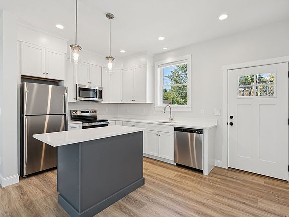 Modern kitchen with stainless steel appliances (dishwasher & microwave included)