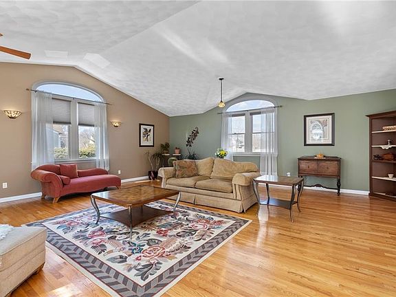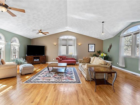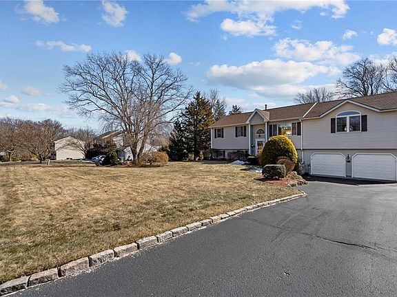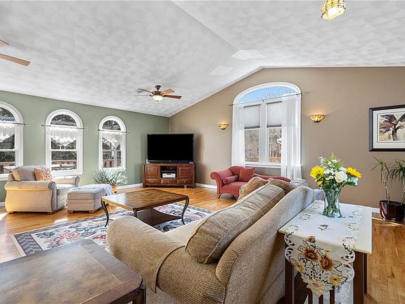 Pristine Custom built home set on 1/2 acre adjacent to Hunters Crossing! This One Owner home offers open floor plan with cathedral ceilings, updated kitchen featuring stainless appliances, Silestone countertops and oversized center island with sliders to deck overlooking private yard with Hot Tub and Fire Pit for cool Summer Nights. Oversized (26' x 25') Bonus Room adds tremendous Great Room with fireplace; 2 Car Garage with extra storage below. Three generous sized bedrooms and updated bathroom on main floor; Lower level provides full bath and additional Family Room, Rec Room for endless possibilities. Central Air for keeping cool, mature plantings throughout maintained by 6 zone front and rear sprinklers.
