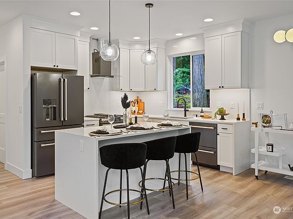 Welcome home to this brand new, one of a kind GEM, tucked away on a quiet neighborhood near the lake. This spacious home is an entertainer's dream. The open living space concept of the main floor makes entertaining easy & fun. You will adore the French doors & beautiful large windows allowing natural daylight to enter, not to mention the tree views. Stunning kitchen features high end matte black Cafe appliances, built in drawer microwave, quartz countertops, & a waterfall kitchen island for extra eating space. Wake up to the serene sound of nature in the exquisite primary suite which features a balcony, vaulted ceiling, walk-in & a luxurious deep soaker tub. Surrounding lakes, mountains, trails, offer endless exploring!