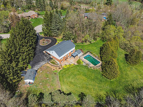 Stunning Custom Home On Private Approx. 2 Acre Lot On A Quiet Court In Highly Desirable Carlisle. Fantastic Curb Appreal !! Enjoy Wildlife and Tranquility Of The Large Green Space. Meticulously Cared For, This Sun-Filled 3,200 Sq.Ft, 5+2 Beds, 4 Baths Home. Fully Renovated New Basement In-Law Suite. A Circular Driveway (Can Fit 10+ Cars) & Beautiful Perennial Gardens At Entrance, 3 Garages (Oversized Attached 2 Car Garage & Detached 1 Garage). Main Floor Bedroom & Laundry With Access to the Garage. Main Floor Features Hardwood Floorings In The Formal Living, Dining & Family Rooms. Great Views in Every Room. Gorgeous Newly Renovated Whitish Open Concept Eat-In Kitchen with Island, Quartz Countertops, Backsplash, Marble Floor, SS Appliance & Lights. Updated 2nd Floor Main Bath and Main floor 3 Pcs Bath. 2nd Floor Large Master Suite and A Bonus Studio/Office. Completely New Walk-out Basement In-Law Suite with Separate Entrance Contains Kitchen, Bedroom with 3 Pcs Ensuite & Walk-in Closet, Office, Living/Dining Room, Fire place. Less Than 10 Years for All Windows, Furnace/A/C and Roof Shingle, Fenced In-Ground Pool & New equipment (Sand Filter System/Pool Liner/Pool Cover/Pump-2023), Garden Shed.. THE MOST PITCTURESQUE SETTING. Truly A Gem!!