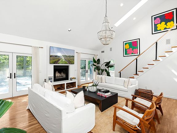 This beautifully updated contemporary sits on a quiet cul-de-sac in the near NW Woods just outside of the Village of East Hampton. An entertainers dream, offering indoor/outdoor living from both the sundrenched great room as well as the eat in chefs kitchen. In addition to the great room the main level also includes a large ensuite bedroom, half bath and laundry. Upstairs you will find the large primary suite with walk in closet and a second spacious bedroom with attached half bath. The finished lower level completes the interior of this wonderfully designed home providing a generously sized media room, bonus room, additional mixed use space and half bath. Surrounded by mature trees and beautifully landscaped the private backyard oasis includes a newly updated heated pool. In the warmer months the all new decking provides an enchanted place for outdoor dinning amongst the lush grounds surrounding the inviting pool. In the cooler months cozy up outside by the wonderful and private fire pit area for a quiet evening under the stars.