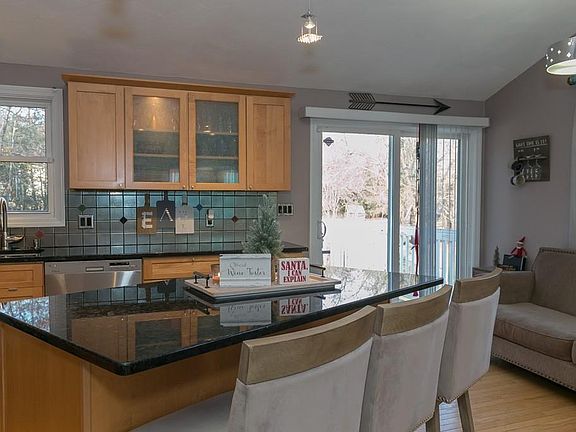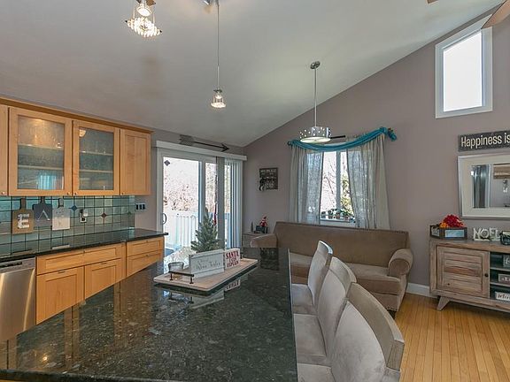 - Kit Dscrp: Flooring - Hardwood, Countertops - Stone/Granite/Solid, Deck - Exterior, Ceiling - Cathedral, Kitchen Island, Remodeled, Balcony / Deck, Slider, Lighting - Pendant
