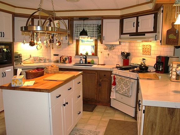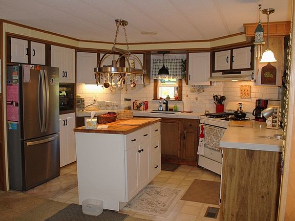 Welcome to this well-maintained 2 bedroom, 2 bath double-wide manufactured home in Cranberry Village. Home is set on a serene wooded lot with a private, tranquil backyard. Inside, you’ll find a spacious living room with a cozy wood-burning fireplace and a beautifully updated kitchen featuring quartz countertops, a new sink, and a gas stove. The home offers a primary suite with a walk-in shower, plus the comfort of central air and the security of newer oil burning furnace. For added piece of mind, there is a back up propane heating system. Recent updates include a durable metal roof, energy efficient windows, vinyl siding, and hot water heater. Outside, enjoy your tranquil yard along with a brand-new shed complete with electricity. Move-in ready and thoughtfully updated, this home combines modern comfort with a peaceful natural setting. There's plenty of room to relax on the 3-season front porch.