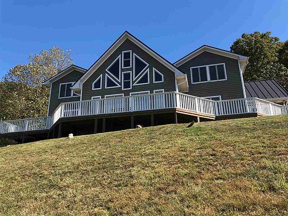 Come see this fantastic home with a view to see! Beautiful view from the large windows to overlook the city and catch a sunset or sunrise! Offering 4 bedrooms and 3.5 bathrooms with a bonus sunroom in this large, spacious home with many amenities. 2 master bedrooms with 2 private bathrooms with wood throughout the home and tile in each bath, claw foot bathtubs, farm house kitchen sink, stainless steel appliances, granite kitchen countertops plus more to enjoy. 120 foot wrap around deck and comes with almost 5 acres of land. Offering a 1 year home warranty. Make this home yours today!