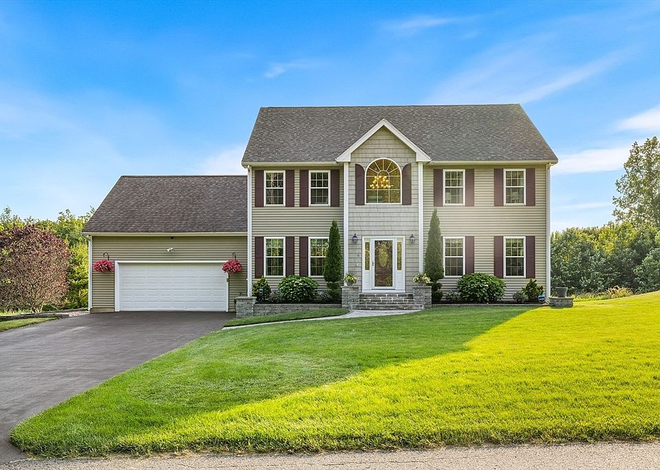 Immaculate 3 bed 2.5 bath 2003 colonial in a perfect cul-de-sac location on acre+ of land in Salisbury. Light & bright with perfect blend of modern elegance this home features hardwood floors throughout spacious living room with french doors to open concept granite kitchen with center island, SS appliances, breakfast table as well as an elegant formal dining room, convenient half bathroom & laundry, gorgeous crown molding and recessed lighting throughout. Bright beautiful heated sunroom with inviting electric fireplace off the breakfast nook with sliders to the perfect oversize deck for outdoor entertaining. Upstairs you will find a spacious primary suite with private bath and walk-in closet and 2 large additional bedrooms with hardwood floors, 2nd full bath. Additional space in finished heated walkout basement, perfect for extended family, gym, endless possibilities, ample storage, attached two-car garage. New Lockivar furnace, many extras, great location, showing at open houses!
