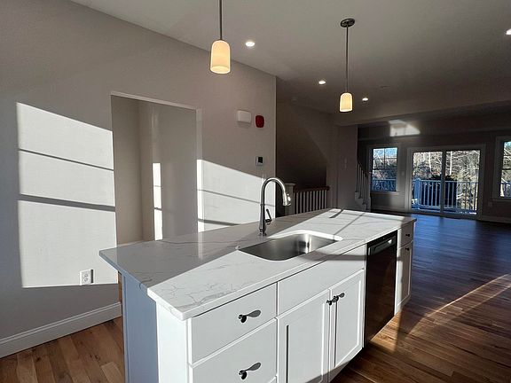 NEW CONSTRUCTION! Welcome to Juniper Commons, a new 50-unit townhome pocket community in a great Portsmouth location. Abutting vast wooded conservation land, this beautifully landscaped community will feature three bedroom, three bath townhomes. The two-car garage entry leads into a finished first floor space ideal for an office, or mud/storage area. Up the hardwood stairs the living level is an inviting open layout with high ceilings, hardwood flooring, and great natural lighting. The spacious living and dining area opens to beautifully finished kitchens including cabinetry to the ceiling, pantry storage, oversized island, stainless appliances, and high end stone countertops. Sliding glass doors off the kitchen leads to a private deck space. The third floor has three bedrooms and two baths, including a primary suite with walk-in closet, and bath with tile shower and glass enclosure. Hardwood flooring throughout all bedrooms and living areas. Central air. Professionally landscaped community with community park, sidewalks, and trail leading to the lush wooded open space behind the homes for all to enjoy!