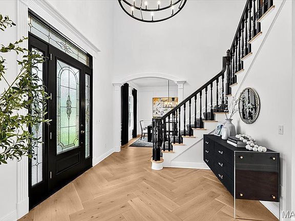 Life Is Better at 6 Kehrs Mill Glen Court. Every room feels like stepping into the pages of a Restoration Hardware catalog! timeless, refined, and elegant. Chevron herringbone wood floors anchor the design, while soaring 10-foot ceilings and curated finishes embody executive-level comfort. Perched atop a hill, the property enjoys sweeping views and privacy. The two-story foyer opens to formal living and dining rooms perfect for entertaining. The great room offers a gas fireplace, wet bar, and bay window overlooking the inviting Pool and Hot tub. The chef’s kitchen features quartz counters, island, farm sink, and professional appliances. A light-filled office and main floor laundry add both beauty and convenience. Upstairs, the serene primary suite offers dual walk-in closets and a spa-like bath with double vanity, whirlpool tub, and separate shower. Three additional bedrooms include a private ensuite and a Jack & Jill. The finished lower level extends living space with a media room, custom bar, Exercise room/fifth bedroom, full bath, and open recreation area. Step outside to resort-style living with a saltwater pool, spa, and stunning stone pool house—complete with outdoor kitchen, beverage refrigerators, half bath, changing room, and gas fireplace. Additional features include a three-car garage, sprinkler system, and meticulous craftsmanship. This is more than a home—it’s a lifestyle of class, comfort and family fun. No detail overlooked Award winning Rockwood Schools