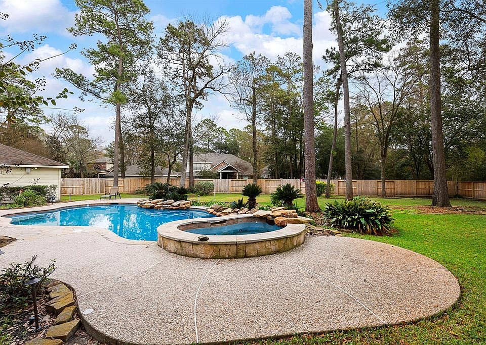 The Woodlands: Pool & spa on huge 17,775 sqft lot w/summer kitchen, patio, play area & new fence in Jan 2021 * HVAC replaced in Dec 21: two new Ultra-high efficient Daikin air conditioners & furnaces, 21 SEER Efficiency A/C & super-efficient furnaces, Daikin 1 thermostats w/ WiFi & Cloud access * other replacements: roof, windows, water heater * updated kitchen: granite, double ovens, warming drawer, 6 burner gas cooktop, microwave in island, deep sink, walk-in pantry, cabinet pull-outs & organizer drawers, plus appliance lift shelf * butler\'s pantry w/glass cabinets above & built-in fridge * family room w/2 stories of windows w/custom ironwork above * quartzite slate floors in kitchen, family & foyer * Study w/ French doors, wood floors, Plantation shutters * Formal dining w/wood floors, Plantation shutters * Large master down * 3 bedrooms up w/2 full baths, & huge game room w/lots of natural light! * crafter\'s dream: oversized garage w/AC * see detailed update & replacement list