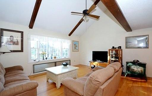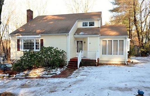 Well-Maintained Cape in Desirable Derry Location! Open floor plan w/ lots of natural light! Large galley style kitchen w/breakfast bar! Spacious living/dining room combo with wood stove, hardwood floors, wood beamed ceiling & bay window! Bright & sunny family room w/ gas fireplace & access to back deck! Great space for entertaining! Large den w/ cathedral ceilings & access to deck, could also be used as office space or dining room! Good size bedrooms w/ ample closet space! Partially finished basement w/ bonus room, potential to be as used exercise/game room or even additional bedroom! Large deck overlooking 1 acre wooded lot! Move-in Ready! Convenient location, easy access to I-93, close to parks, shopping, dining & more!