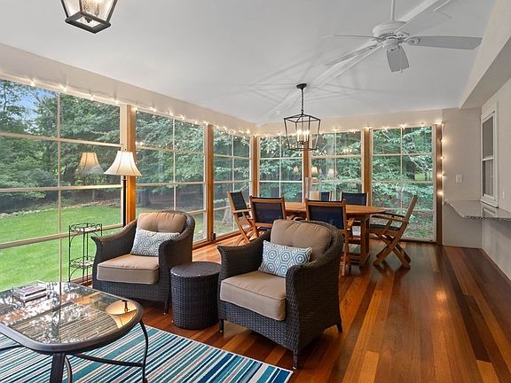 PLEASE SUBMIT OFFERS BY 10/9 MON 12PM Prepare to be wowed by the recently renovated open concept living in this meticulously cared for home. The stylish eat-in kitchen, boasting Carrara marble back splash, sumptuous quartzite counters, extraordinary island w/built in appliances, bar area w/beverage fridge, custom cabinetry w/under-lighting is like a sun dial, central & open to all the 1st floor rooms. Ideal flow for easy living & entertaining! West: sun drenched living room w/ lighted tray ceiling, stone gas fire place, North: amazing 3 season porch w/ mahogany floors & special Eze window/screens, East: large dining room w/ gas fireplace & lovely front window, South: pantry, 1/2 bath, & perfectly sized office. Abundant light in LL family rm. Upstairs offers 4 generous bedrms, lots of closets + Primary has new ensuite ba. Gleaming hardwood floors & substantial moulding throughout accentuate quality of construction. Enhanced outdoor living w/peastone fire pit area, deck & level back yard