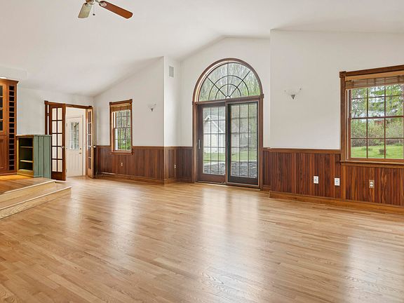 Situated on almost an acre of well landscaped grounds, you will be totally impressed with this meticulously maintained home that can only be described as ''stunning.'' This spacious home with a custom designed and built kitchen with all the bells and whistles including built in china cabinets and extensive storage. The kitchen opens to a stunning large sunken great room with radiant heat, gas fireplace, cathedral ceilings and custom wainscotting. The Great room opens to a stone terrace and stone walls and overlooks the large open yard. Large dining room with vaulted ceilings perfect for entertaining. 1st floor primary bedroom with large bath offering custom cabinetry, spa tub and separate shower. 1st floor has hardwood floors throughout. On the 2nd floor you will find 2 generous bedrooms as well as an office. Oversize 28' X 34' garage with extensive storage/workshop above. Basement has a cedar lined closet. Home has central vacuum. Look at photos to see this remarkable home.
