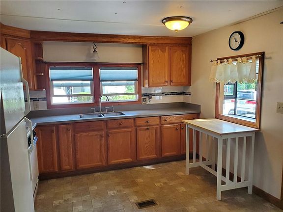 Better than paying rent. Nicely maintained 2 bedroom, 1 bath ranch with a beautiful 3 season porch. Kitchen and bathroom updated, Kitchen has a propane gas range and refrigerator to remain. Open kitchen and living room. Small patio and large shed also remain with home. Access to Inlet to Mapleroot Pond. Subject to park approval by Mapleroot Village. Please see park website (see showing instructions): park application, rules and regulations. Leased land $418 mth includes water, septic, plowing and managment.