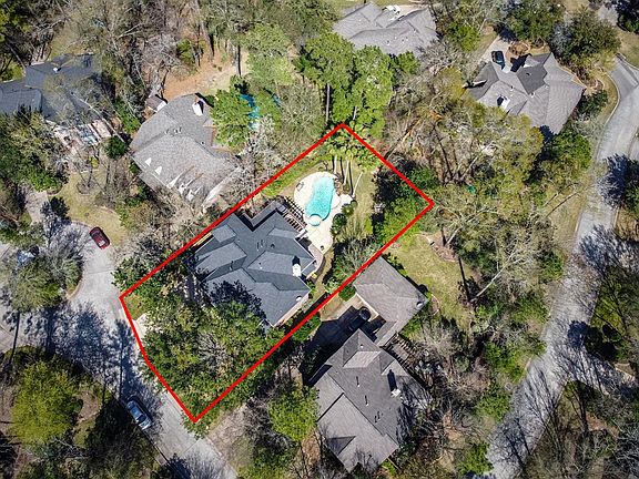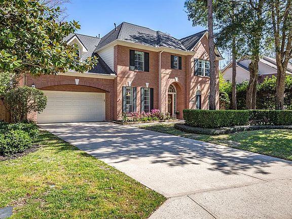 Beautiful home on large cul-de-sac lot in Hazelcrest. Fabulous backyard with pool/spa and rock waterfall. Soaring ceilings, built-ins, and stacked stone fireplace surround in living room. Gourmet kitchen has been updated with granite, white cabinets, gas cooktop, double ovens, pull out trash cabinet, walk-in pantry, and fridge. Large master suite with remodeled bathroom, including granite counter tops, double vanity cabinets, and large walk-in shower. Sun room/study downstairs. Recent updates include custom Plantation shutters and woven woods, HVAC system, ductwork, water heaters, roof, light fixtures, hardware, ceiling fans, pool heater, and fencing. Great storage, walk-in closets, and Texas basement. Children's study off game room. Balcony over looking the pool and backyard. Removable pool security fence to remain. Great location near parks, restaurants, and shopping. Minutes from The Woodlands Mall, Market Street, and Hughes Landing. Walk to neighborhood playground.